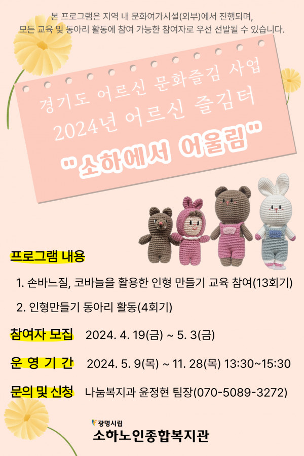 2024년 어르신즐김터 "소하에서 어울림" 참여자 모집