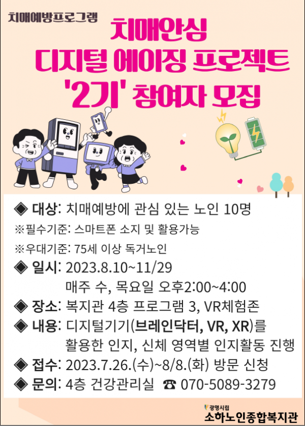 치매예방 프로그램 “치매안심 디지털 에이징 프로젝트” 2기 참여자 모집 안내