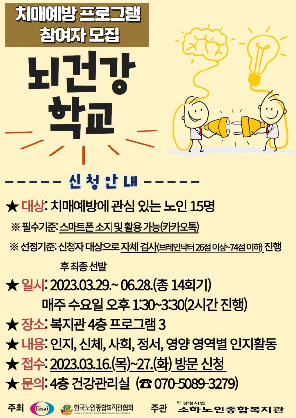 한국에자이와 함께하는 치매예방 프로그램 '뇌건강학교' 참여자를 모집합니다.