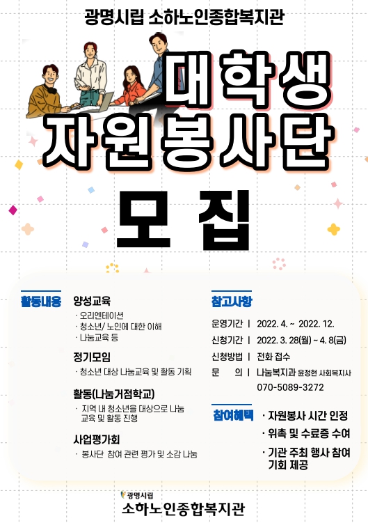 진행할 대학생 자원봉사단을 모집합니다.