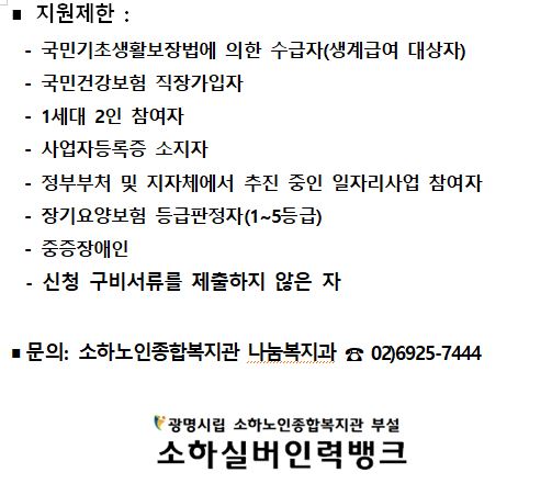 광명시립 소하노인종합복지관 부설 소하실버인력뱅크에서는 2022년 광명형 일자리'에코플러스 참여자 모집을