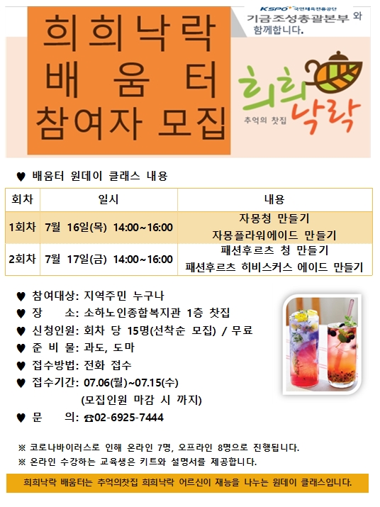 기금조성총괄본부 지원 '추억의 찻집 희희낙락 배움터' 참여자 모집