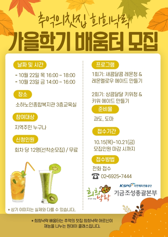 기금조성총괄본부 지원 '추억의 찻집 희희낙락' 가을학기 배움터 참여자 모집