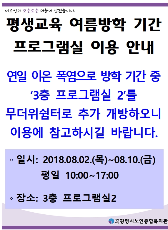 평생교육 여름방학 기간 중 프로그램실 이용안내