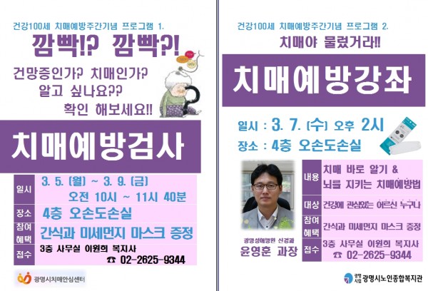 치매예방검사 및 치매예방강좌 하러 오세요^^