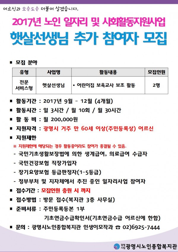 시장형(전문서비스형) 햇살선생님 추가 참여자를 모집합니다