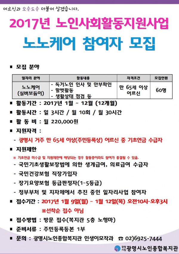 2017년 노인사회활동지원사업 노노케어 사업단 참여자 모집