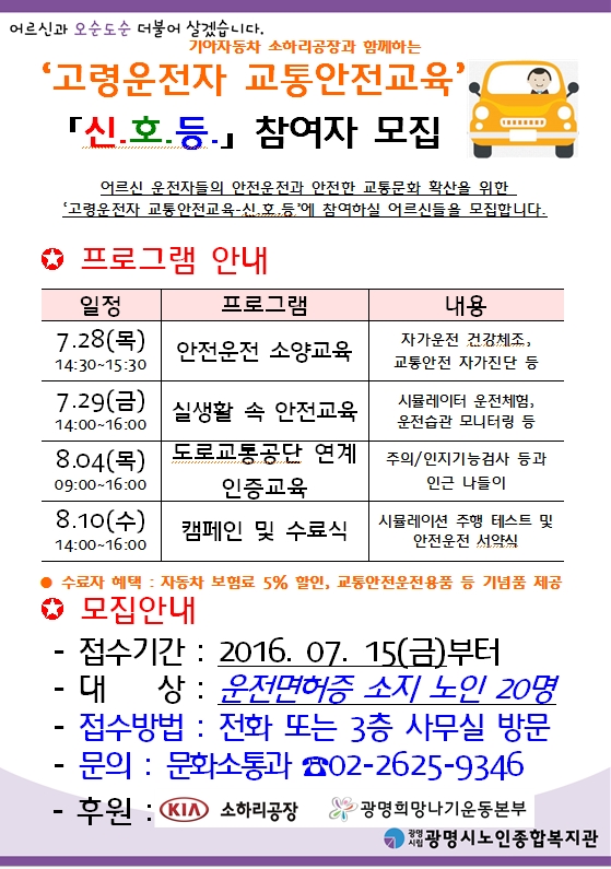 고령운전자 교통안전교육 '신.호.등'참여자 모집