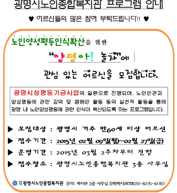 노인양성평등인식확산을 위한 \"양평아! 놀자\"참여자 모집