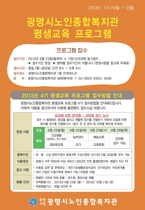 4기 평생교육 프로그램 접수안내
