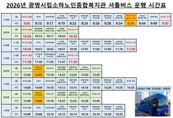2026년 소하노인종합복지관 셔틀버스 노선안내
