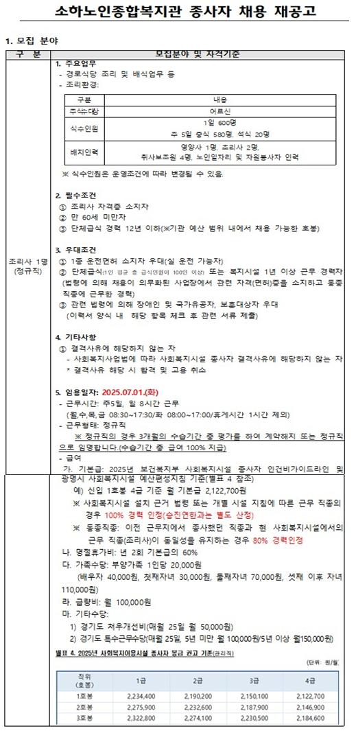 ※ 메일제목: 소하노인_조리사분야_응시자 성명