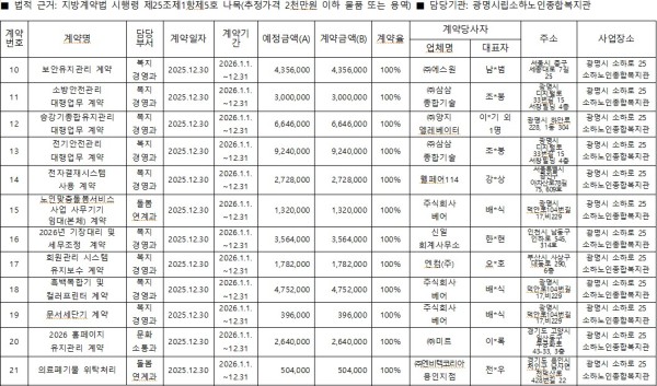 수의계약 내역 공개(2025.12.30.)