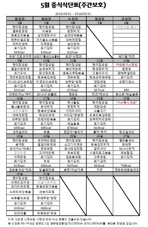 소하노인주간보호센터에서는 이용자 및 가족 등을 위해 5월 일정과 식단표를 안내하여 드립니다.