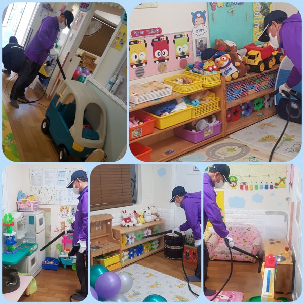 저희 어린이집은 광명 실버 방역 사업단 어르신들의 철저한 방역과 소독으로 안전한 어린이집이 되고 있습니다.