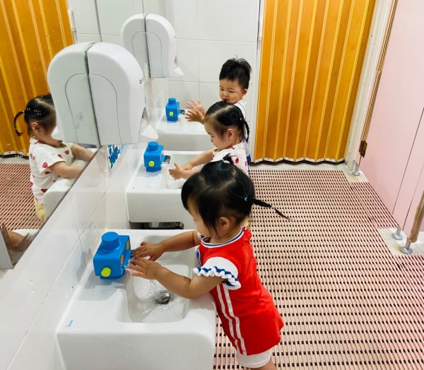 2. 선생님이 영아들에게 손씻는 모습을 직접 보여준다.
