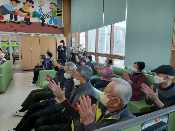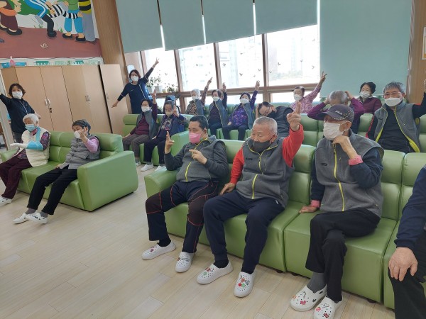신나는 음악소리와 강사님의 구령에 맞추어 어르신들의 율동과 웃음소리도 점점 더 커진답니다.