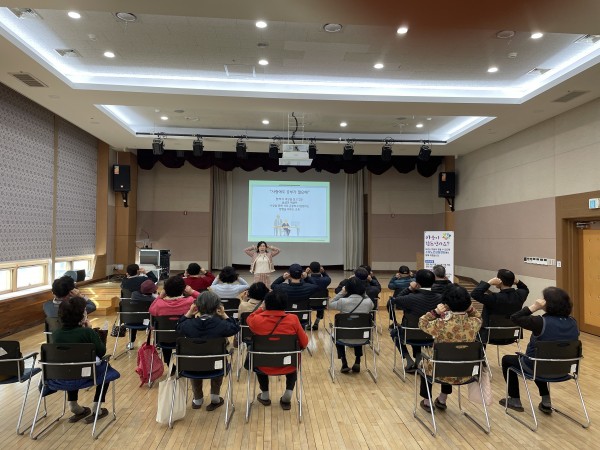 강사를 모시고 진행된 이번 교육프로그램에서는 네 가지 주제 '노년의 성평등한 의사소통', '용기를 내어도 당당할 나이', '사랑에도 공부가 필요하다', '툭 터놓고 얘기해요'를 다루었으며, 건강 체조도 하고 노년의 성에 대해 이야기를 나누는 시간도 가졌습니다.