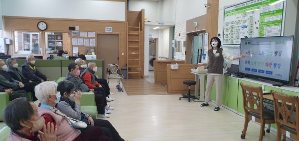 두뇌운동은 이름 그대로 인지활동시간입니다. 어르신들이 직접 생각해야하고 고민해야 대답을 할수 있고, 기억해야 하는 프로그램인데요. 중간중간 웃음과 재미있는 이야기로 지칠 틈이 없는 프로그램으로 어르신들께 인지저하예방에 큰 도움이 되리라 생각됩니다.