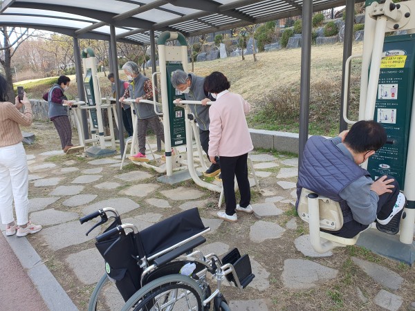 센터 안에 계시다 밖에 나오니 어르신들 너무 좋아하시네요.