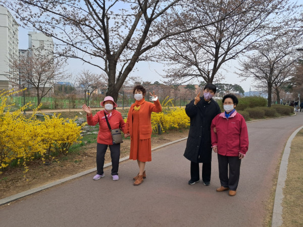 주간보호 어르신들과 한내천에 노란 개나리를 보고 왔습니다.