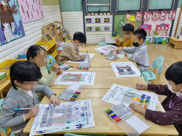 2022년 12월 19일부터 21일까지 지역 내 어린이집 3곳을 대상으로, 기아위드지역복지지원사업 '놀이터_다같이 그린해요!'를 진행하였습니다.