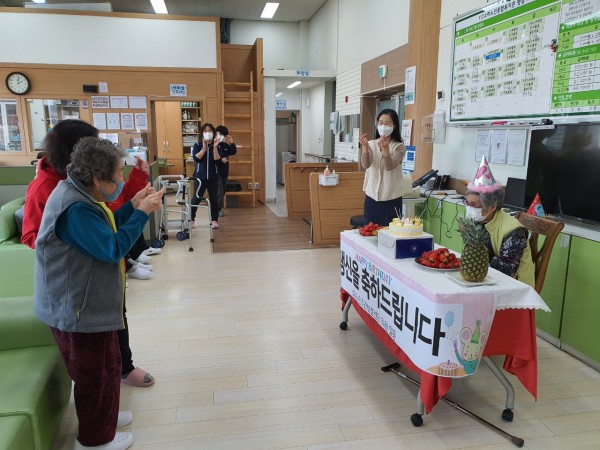 가족들보다 더 많은 시간을 보내고 있는 소하노인주간보호센터 동료 입소자 분들과 직원이 함께 한 생신,