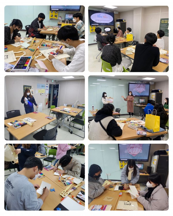 청소년 친구들은 솜씨를 발휘하여 효자손, 에코백, 연하장 만들기에 열심히 참여해주었습니다.