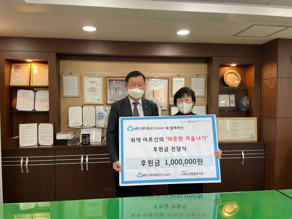2021년 12월 16일 MG새마을금고 광명동부와 함께하는 취약어르신의 '따뜻한 겨울나기' 후원전달식이 진행되었습니다.