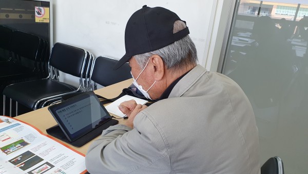 테블릿을 켜고 사용하는 방법부터 차근차근 안내에 따라 어려움없이 참여하였습니다.
