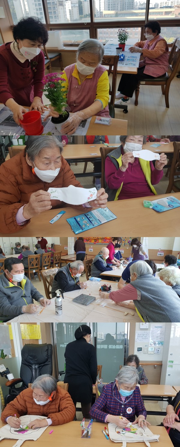 국화꽃 화분 만들기, 가죽공예, 에코백만들기, 마스크 스트랩 만들기, 예쁜 글씨 써보기 등으로 10회기를 꽉 채웠는데요,