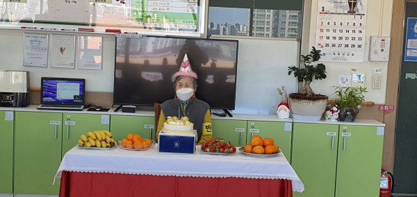 1월의 주인공은 고정범 어르신입니다. ^^ 생신상도 제철과일로 푸짐하게 차려졌고