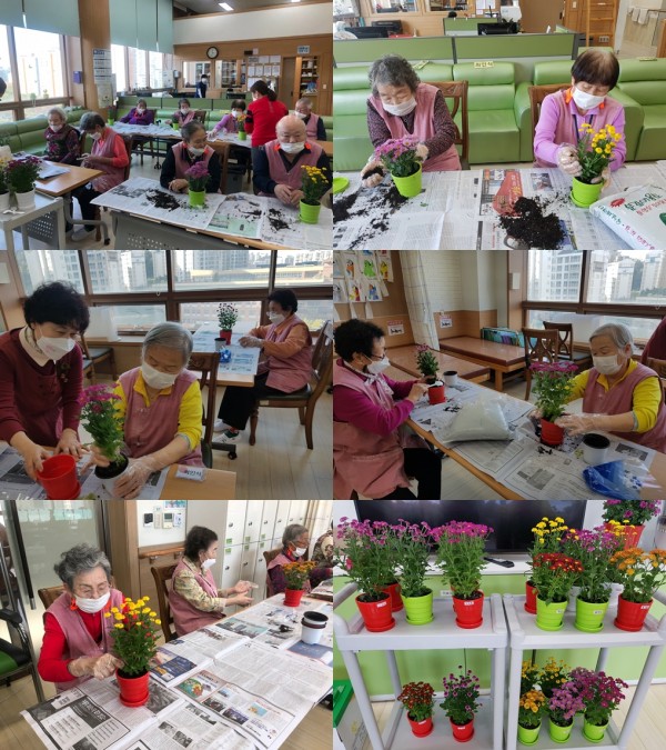 국화꽃이 이렇게 이쁜지 처음 알았는데요, 색색의 화분을 완성하고 향기도 너무 진해서 들뜬 모습으로 어르신들도 적극적으로