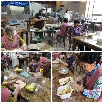 소하노인주간보호센터 조리사님의 지도에 따라 금일 특별한 요리활동이 진행되었습니다.