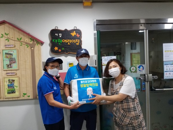 원아들에게 유아용 썬크림 및 치약, 손비누를 전달하고,