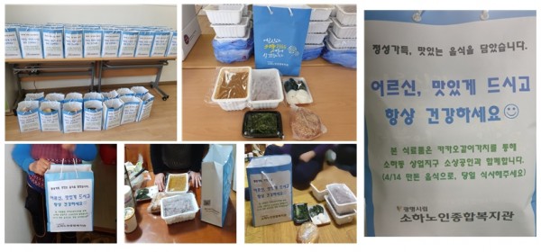 1차 식품키트는 소하동 상업지구 상가에서 구매한 청국장, 봄취나물, , 고로케빵으로 구성되어 56명의 취약어르신에게 전달되었습니다. 어르신들은 식품키트를 받으시고, ‘요즘 딱 먹고 싶었던 청국장이네! 너무 맛있겠다라며 입맛을 돋우셨습니다. 카카오 같이가치에서 모인 따뜻한 마음! 소상공인&취약어르신 모두 힘내세요!