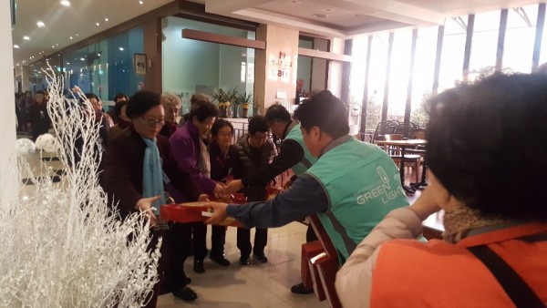 행사에 초청된 독거어르신 500분은 행사 차량으로 행사장소인 \'메종 드 블랑\'으로 오셨으며, 기념식과 오찬, 축하공연을 즐기고 기념품을 받고 집으로 귀가하셨습니다.