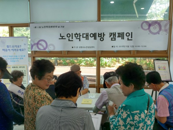 광명시노인복지관에서는 노인학대예방의날을 널리 알리고 노인학대를 예방하기 위한 캠페인을 진행하였습니다.