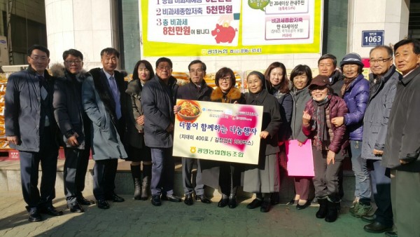 하안동에 위치한 광명농협에서 광명시 내 복지기관을 대상으로 지대미와 김장을 지원하는 전달식을 진행했습니다. 오늘 지원받은 지대미 70포와 김장김치 30박스는 지역 내 저소득 독거노인 가정에 잘 전달해드렸습니다. ^^*
