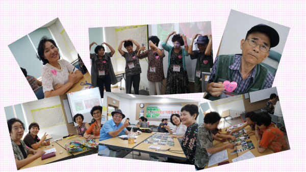 오늘 어르신자원봉사학교 첫째날을 맞이하여, 스스로 별명 정해서 다른 사람들과 공유하면서 관계형성 프로그램도