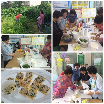 허브를 활용하여 샐러드 우동 / 카나페 두가지 음식을 만들어 활동가