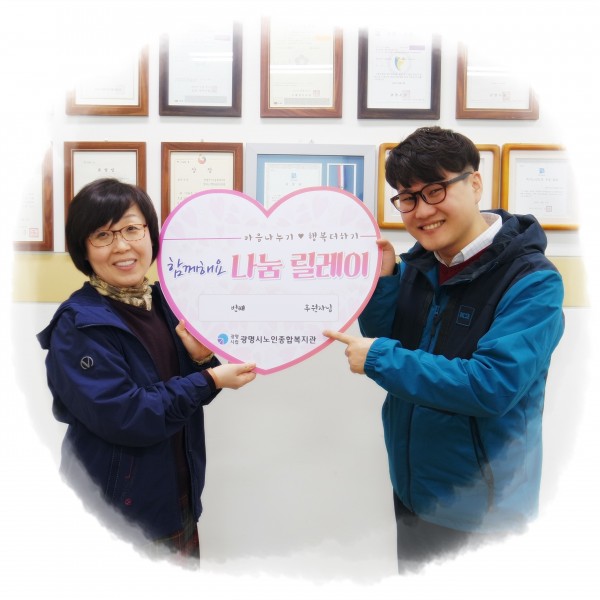 나눔릴레이 후원은 소액 후원을 하는 다수의 후원자를 모집하여 나눔의 마음을 전달하는 광명시노인종합복지관 나눔 브랜드입니다.