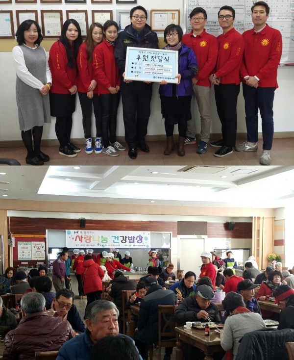 12월 4일 경로식당을 이용하시는 어르신들의 건강을 위해 (주)NHF에서 맛있는 식사와 자원봉사로 \"사랑나눔 건강밥상\"을