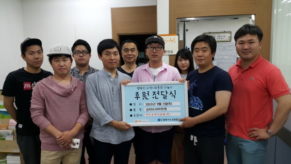 방문해주신 직원 9분이 광명시의 어르신들을 위해 정성이 담긴 후원금을 전달하는