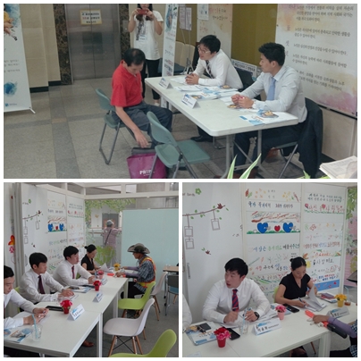 2013.08.22 목요일 9시30분부터 15시까지 광명시노인종합복지관에서 보건복지부 국책사업 \'찾아사는 노후설계 무료상담서비스\'가 진행되었습니다. 5층상담부스에 6명의 재무설계전문가가 상주하여 복지관이용 어르신들에세 종합재무설계를 해주었고, 1층 로비에서는 노후생활설계사가 상주하여 종합노후상담서비스를 제공하였습니다.