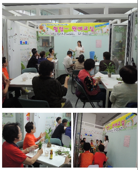 2013년 9월 11일(수) 광명시평생학습축제의 일환으로 광명시노인종합복지관에서 \'힐링~원예교실\'을 실시하였습니다.