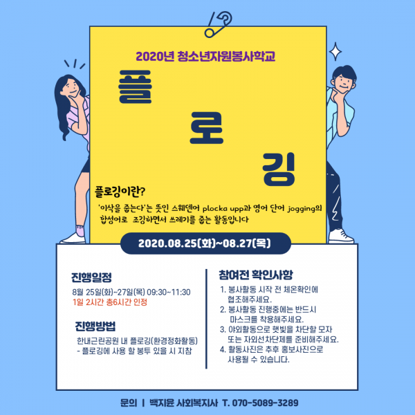기존 계획되었던 실내프로그램 진행이 불가하여 야외에서 '플로깅' 활동을 진행하고자 합니다.