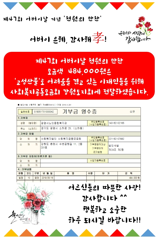 제 47회 어버이날 천원의 행복 결과 484,000원이 모금되었으며,
