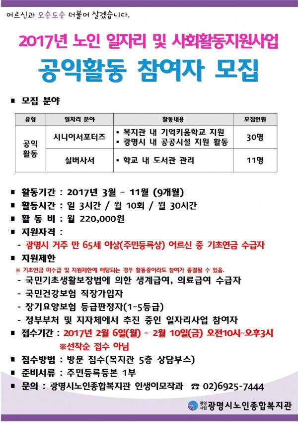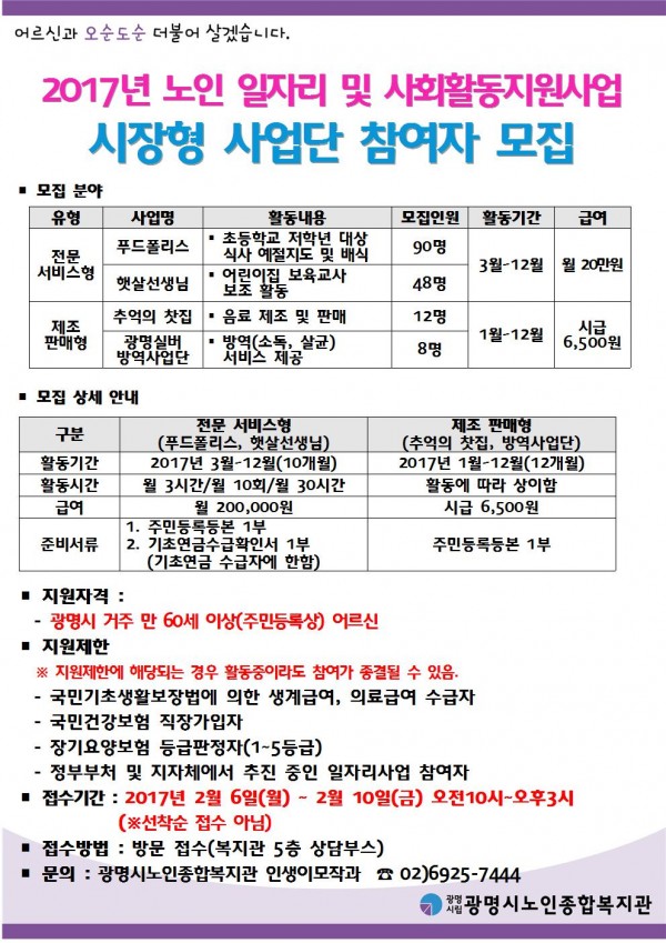 2017년 노인 일자리 및 사회활동 지원사업 참여자 모집