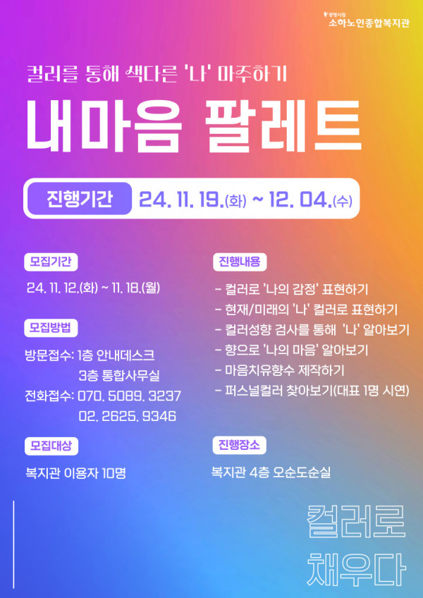컬러를 통해 색다른 나 마주하기 '내마음 팔레트' 집단프로그램 참여자 모집(~11/18(화)까지)